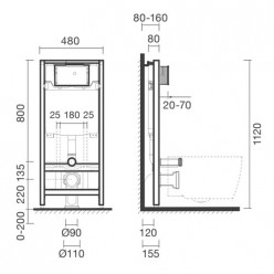 Módulo de instalação para sanita suspensa para sanitas suspensas. Instalação mural (de encastre). Fixação ao chão e à parede. Para paredes ligeiras. Em aço termolacado. Cisterna com isolamento anti-condensação e capacidade de descarga 3/6 litros (regulável para 3/4,5 ou 2/4 litros). Compatível com placas de comando para módulos Inside. Na embalagem: módulo de instalação, ligações, torneira de esquadriae kit de fixação.