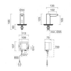 UNIC TORNEIRA ELETRÓNICA LAVATÓRIO 1 ÁGUA 230/6V CROM UN