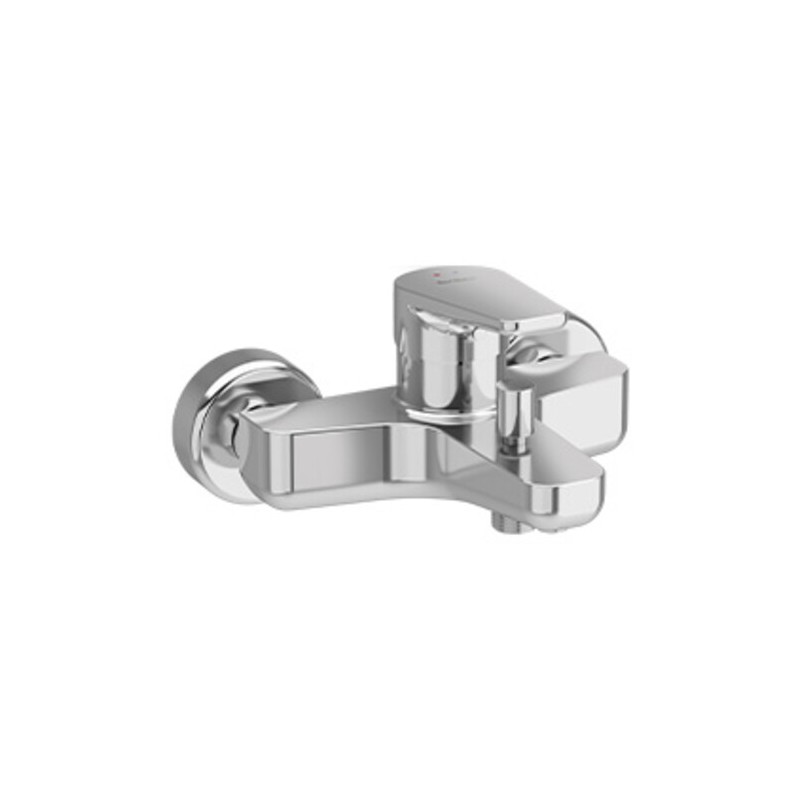 Torneira monocomando para instalar na parede (duches). Cartucho de discos cerâmicos. Monocomando. Redutor de caudal integrado. Na embalagem: torneira, chuveiro de mão, suporte, flexível de 170cm e kit de fixação.