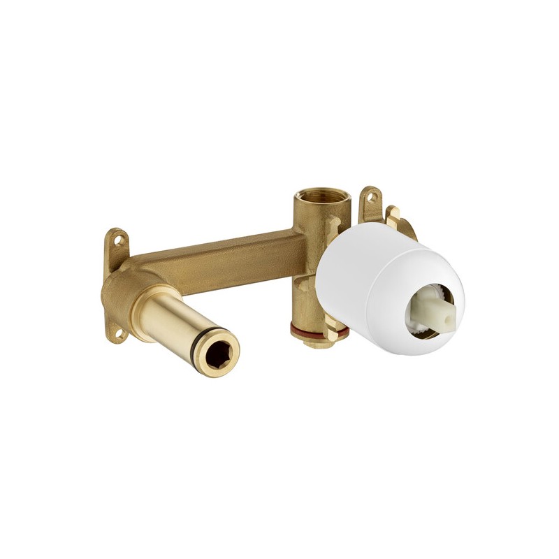 Kit universal Roca concebido para instalação encastrada de misturadoras monocomando de parede para lavatório com ligação de água 1/2" compatível com várias misturadoras de lavatório encastradas da Roca incluindo modelos das coleções Insignia e Naia oferece um corpo técnico oculto que facilita a montagem de torneiras embutidas na parede com poupança de água e energia e proporciona uma base fiável e organizada para integrar a torneira de encastrar na casa de banho com estética minimalista ideal para projetos de lavatórios contemporâneos.