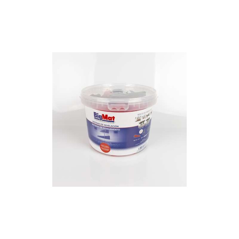 Sistema de nivelamento para colocação de pavimentos e revestimentos cerâmicos. Inclui: 100 bases / 1mm, 100 cunhas e 1 Bigmat Swift tool.