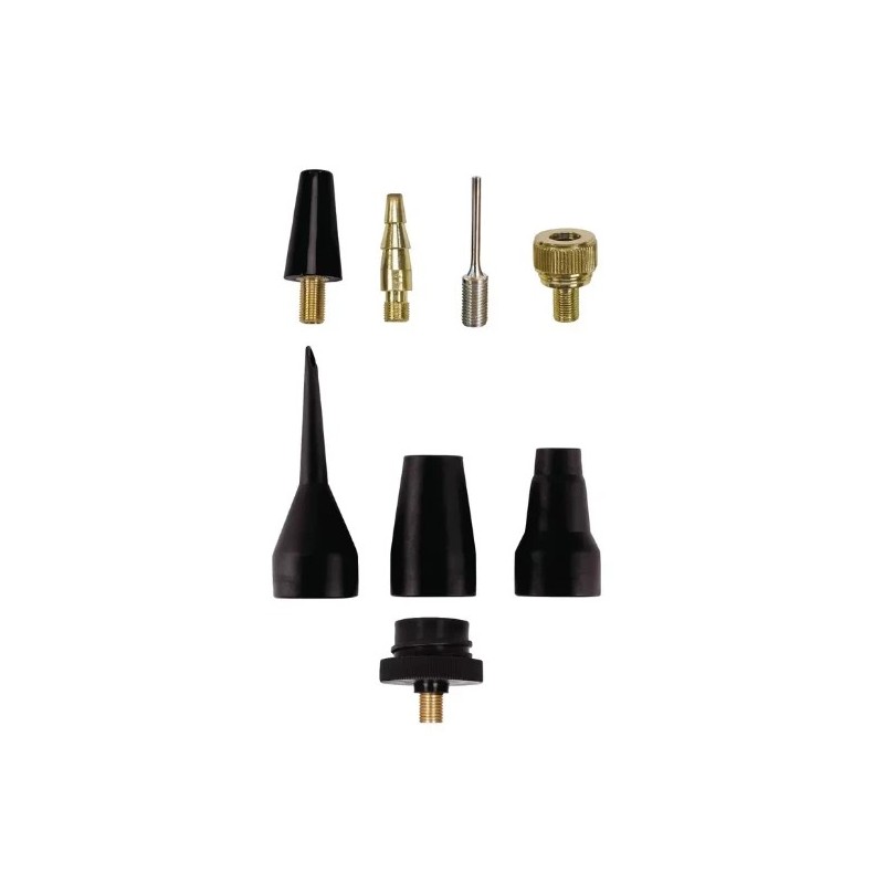 Com o conjunto de adaptadores de enchimento Einhell de 8 peças, o proprietário de um compressor está equipado para uma ampla variedade de tarefas de enchimento e esvaziamento em casa, na oficina ou na estrada. Atletas e artistas de bolas de hobby ficarão satisfeitos com a agulha de bola de metal resistente que pode ser usada para inflar uma grande variedade de bolas. Encher pneus de automóveis e motos, encher bolas de basquete, bolas de futebol e voleibol ou mesmo colchões de ar, barcos insufláveis, etc. - com o conjunto de adaptadores de enchimento de 8 peças da Einhell, isto deixará de ser um problema no futuro. Um robusto adaptador de válvula facilita o enchimento de pneus de bicicleta. O adaptador adicional é projetado para válvulas com um diâmetro interno de 8 milímetros. Um adaptador para uso com válvulas de parafuso disponíveis comercialmente também está incluído no escopo de entrega.
