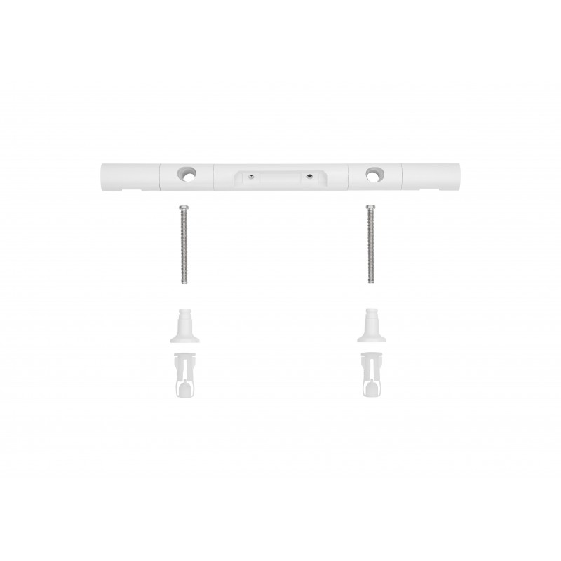 Kit de dobradiça branca para assento Dama Retro: Dobradiças em nylon de 305 mm de comprimento e 24 mm de diâmetro. Contém também 2 ancoragens com taco para fixar na sanita.