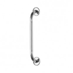Barra de apoio reta em aço inoxidável 304 com acabamento polido satinado UltraSatin, concebida para apoio e elevação de utilizadores em sanitários, duches ou banheiras, especialmente adaptada a pessoas com mobilidade reduzida, com tubo de diâmetro 32 mm e comprimento entre eixos de 900 mm, superfície homogénea e não porosa que facilita a limpeza e limita o desenvolvimento bacteriano, fixações ocultas em inox com placa de três pontos e soldadura de segurança invisível que garante elevada resistência e durabilidade, distância à parede de 40 mm que assegura ergonomia e segurança de utilização, fornecida com parafusos em inox para instalação em parede de betão, testada para cargas superiores a 200 kg com peso máximo recomendado do utilizador até 135 kg, certificação CE e garantia de longa duração até 30 anos, ideal para utilização intensiva em ambientes públicos, hospitalares ou residenciais acessíveis.