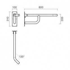 Barra de apoio basculante para sanita para instalar na parede, com parafusos (esquerda). Em aço inoxidável. Na