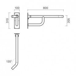Barra de apoio basculante para sanita para instalar na parede, com parafusos (direita). Em aço inoxidável. Na