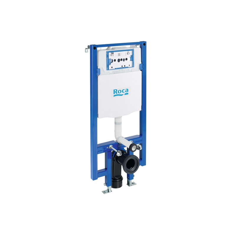 O Roca Duplo WC One Compact é uma estrutura de instalação embutida com cisterna compacta e sistema de descarga dupla concebida para sanitas suspensas, oferecendo uma solução técnica que poupa espaço e facilita a montagem em paredes com profundidade reduzida. Esta unidade é adequada para ligação de curva Ø90/Ø110 mm e permite diferentes volumes de descarga dual, como 3 L / 6 L ou 2 L / 4 L, para uma gestão eficiente do consumo de água e desempenho fiável em aplicações domésticas ou profissionais. A entrada de água situa-se na parte superior e a placa de acionamento instala-se frontalmente, proporcionando acessibilidade e integração fácil com diversos modelos de sanitas suspensas compatíveis. A profundidade compacta de 80 mm e a profundidade mínima de fixação de 90 mm tornam esta solução versátil para projetos de casa de banho modernos com espaço técnico limitado, garantindo resistência, estabilidade e compatibilidade com uma ampla gama de placas de acionamento e acessórios.