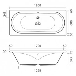 Banheira retangular em acrílico - 1800 x 800mm - com superfície liSA.Sem
