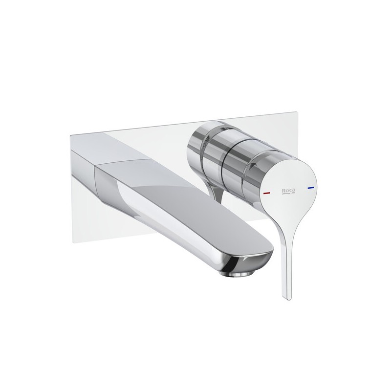 Misturadora monocomando de parede para lavatório Roca A5A353AC00 concebida para instalação encastrada mural em lavatórios com acabamento cromado de alta resistência, equipada com cartucho cerâmico que assegura controlo preciso de caudal e temperatura e limitador de caudal para eficiência no consumo de água, não inclui o esgoto e deve ser finalizada com o kit universal de corpo embutido RocaBox A525220603 para instalação completa, apresentando um design da coleção Insignia com contornos suaves e um manípulo lateral estilizado que confere elegância e carácter urbano aliado a funcionalidade técnica fiável e facilidade de manutenção ideal para casas de banho modernas e minimalistas.