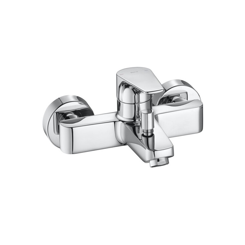 Misturadora monocomando exterior para banho-duche Roca Atlas A5A0290C00 concebida para instalação mural com inversor automático integrado e acabamento cromado de alta resistência, equipada com cartucho cerâmico para controlo preciso de caudal e temperatura e concebida tanto para duche como banheira com ligação padrão 1/2” que facilita a instalação, incorpora limitadores de caudal e tecnologia Cold Start que promovem poupança de água e energia e apresenta um design técnico e versátil que alia funcionalidade fiável à estética elegante ideal para ambientes de banho contemporâneos com desempenho eficiente e conforto no uso diário.