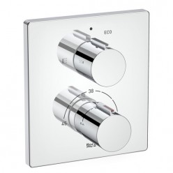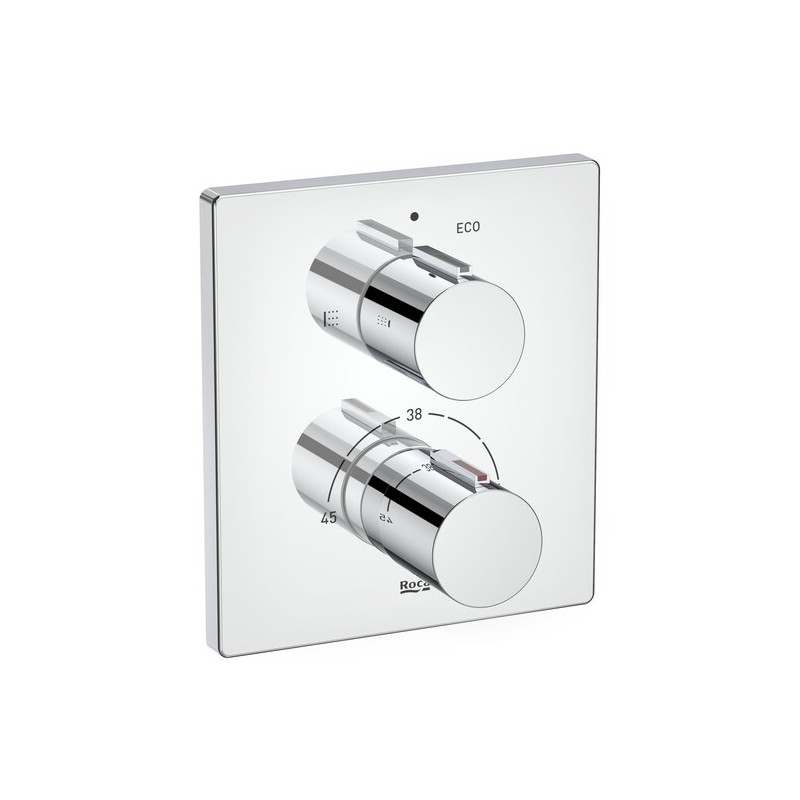 A misturadora termostática de encastrar para banho-duche com desviador caudal RocaBox (ref. A5A0C88C00) é uma torneira de encastrar com acabamento cromado concebida para uso em banheira ou duche que combina regulação de caudal e temperatura de forma precisa através de um cartucho termostático integrado proporcionando uma experiência de banho segura e confortável graças às tecnologias Quick Reaction, SafeTouch e Safety 38º requer a instalação com o módulo RocaBox universal e destaca-se pelo design compacto e elegante que permite uma instalação discreta na parede oferecendo também um regulador de fluxo com desviador caudal que facilita a transição entre banheira e chuveiro garantindo funcionalidade elevada e estética refinada num ambiente de casa de banho moderno.