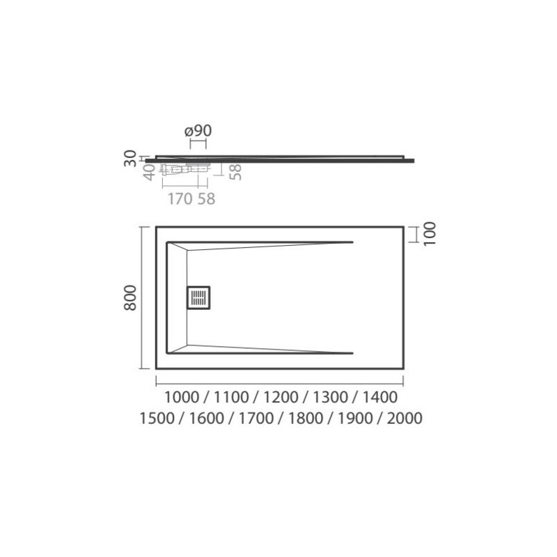 antiderrapante em stonex®-. Formato retangular, Altura da aba exterior. Com uma válvula de descarga de (incluída). Na embalagem: base de duche, válvula de descarga e grelha de escoamento.