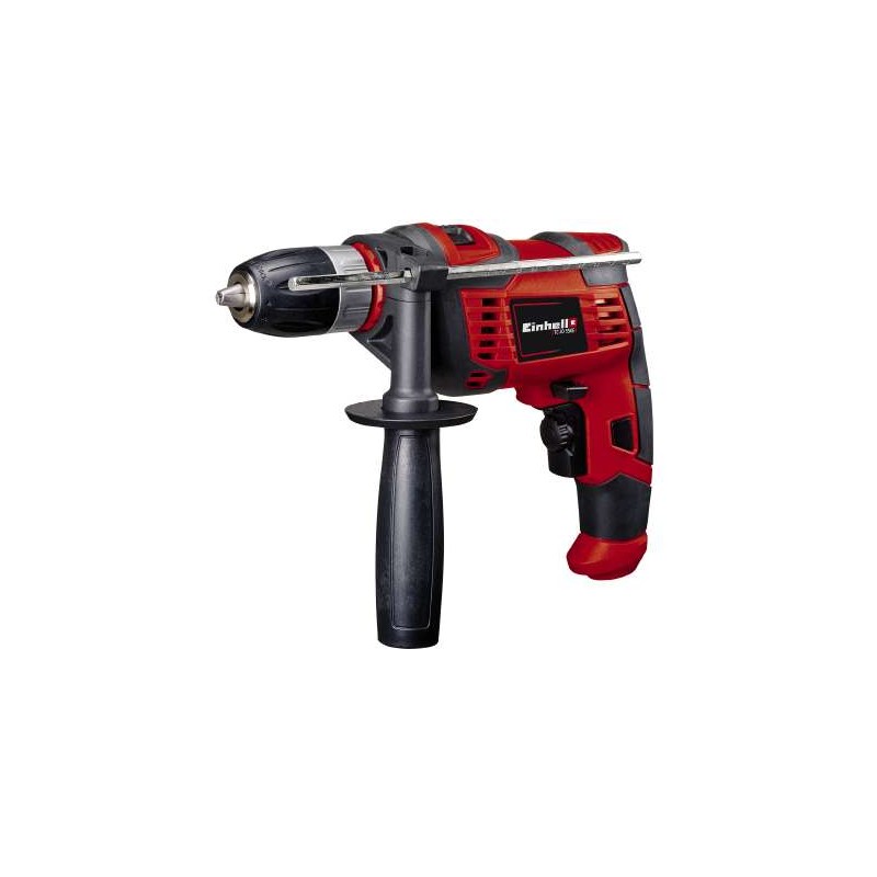 Graças à sua construção compacta e ao manuseamento simples, o berbequim de impacto TC-ID 550 E Einhell é o complemento perfeito para a caixa de ferramentas lá de casa. O berbequim de impacto da Einhell é adequado para principiantes e profissionais, e cumpre com o seu objetivo em todos os trabalhos de perfuração normais em casa. As possibilidades de utilização do TC-ID 550 E são muitas: permite aplicar rapidamente revestimentos na casa de banho ou na cabina de duche, montar armários de cozinha ou fixar quadros pesados nas paredes. As lâmpadas, os projetores ou os monitores de ecrã plano podem facilmente ser instalados. O sistema eletrónico de regulação das rotações com pré-seleção das rotações regula e facilita a perfuração de materiais porosos ou moles, como ladrilhos ou betão lavado. O batente metálico, de profundidade, robusto, é também uma grande ajuda no caso de trabalhos de precisão e de furações rápidas em série. O apoio técnico para uma precisão extrema garante também que sejam alcançados os melhores resultados com materiais exigentes. Além disso, o berbequim de impacto tem um dispositivo de rotação à direita e à esquerda para perfurar e aparafusar, bem como uma pega adicional de ajuste contínuo para permitir trabalhos perfeitos. A pega adicional permite ao utilizador amador fixar o berbequim de forma segura e com as duas mãos, dirigindo a força aplicada exatamente para o ponto desejado. O berbequim de impacto da Einhell está equipado com um mandril de aperto rápido de 13 milímetros, que permite uma troca simples de ferramentas. Deste modo, a utilização de uma chave adicional para o mandril é desnecessária.