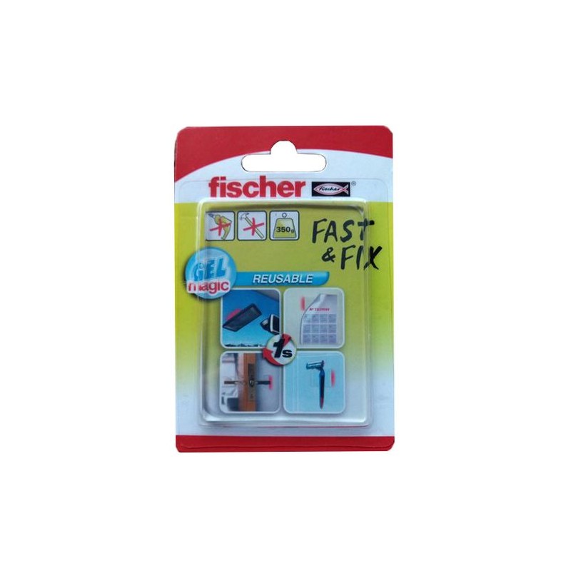 MAGIC gel universal. Com este gel especial fast & fix da Fischer você pode colocar pequenos objetos quotidianos até 350gr e reutilizá-lo quantas vezes quiser. Para fixar em telhas, melamina e vidro. É ideal para banheiros e cozinhas.