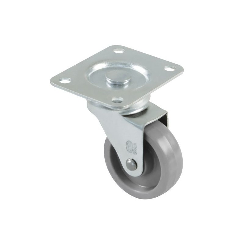 Roda em poliamida com placa e rolamentos.