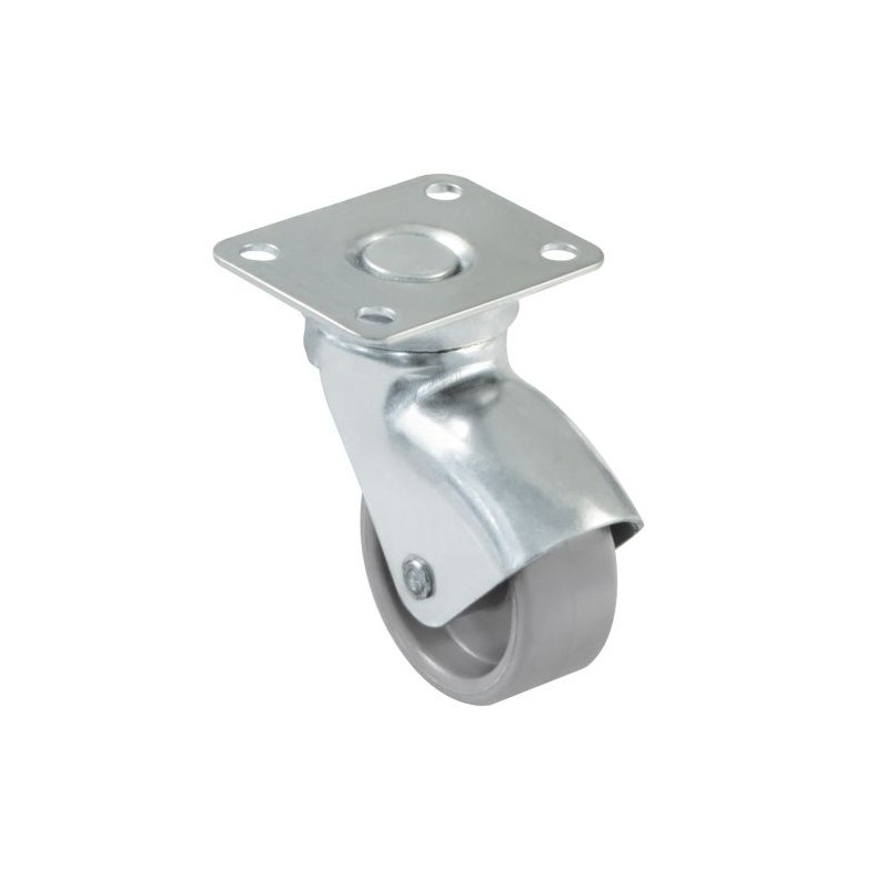 Roda de nylon com placa e rolamentos.