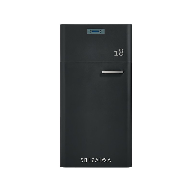 O SZM A da Solzaima é uma caldeira automática a pellets concebida para aquecimento central eficiente e sustentável com potência entre 18 e 30 quilowatts conforme o modelo e rendimento superior a 90 por cento garante um elevado desempenho com baixo consumo de combustível o depósito integrado tem capacidade para cerca de 45Kg de pellets permitindo uma autonomia que pode variar entre 7 e 34 horas dependendo da potência utilizada o consumo vai de 1,3 até 6,1 quilos por hora a caldeira inclui controlo automático da combustão sensores de segurança e display programável estando preparada para instalação hidráulica completa sendo uma solução robusta ecológica e ideal para sistemas de climatização central em habitações modernas ou edifícios de média dimensão.