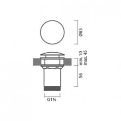 Válvula de descarga A55/100 com mecanismo de abrir e fechar (stop and go), tampa redonda, para lavatórios e bidés.