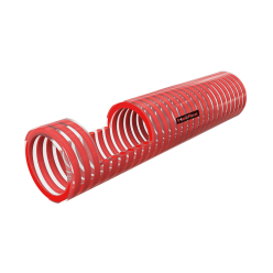 Tubo flexível, não tóxico, reforçado com espiral rígida e fabricado de acordo com legislação que regulamenta os materiais e objectos destinados a entrar em contacto com géneros alimentícios.
