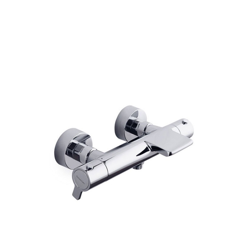 Misturador de chuveiro termostático, sistema CoolTouch anti-queimadura, sistema Termostop para limitação de temperatura, sistema anticorrosão patenteado e acabamento cromado Diamond Finish.