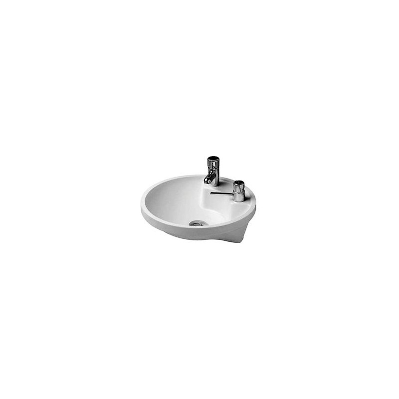 - Com um orifício para torneira feito no lado esquerdo e um orifício para doseador de sabão marcado no lado direito.