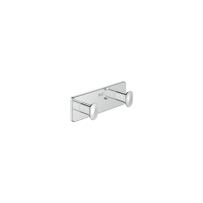 Cabide duplo mural da coleção Victoria em metal com acabamento disponível em cromado ou preto mate concebido para oferecer duas zonas de suspensão para toalhas roupões ou outros acessórios com dimensões compactas de 135 × 36 × 45 mm e capacidade de suporte até 5 kg garantindo robustez e fiabilidade com instalação simples na parede através de kit de fixação incluído ou opção de adesivo sem perfuração perfeito para organização eficiente em casas de banho residenciais ou comerciais com um design funcional e intemporal que se integra harmoniosamente em diferentes estilos de decoração.