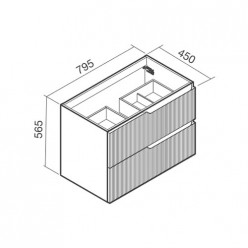 objetos. Tecnologia de corrediças ocultas com fecho amortecido (puxar para abrir). Compatível com tampo Blossom 80 ou lavatório de encastre em