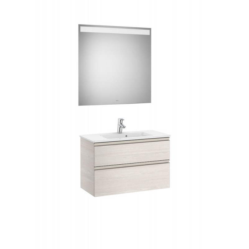 Este pack compacto com móvel base de 2 gavetas, lavatório central e espelho com luz LED integrada é uma solução completa e elegante para casas de banho modernas que necessitam de otimizar espaço sem perder funcionalidade combinando um móvel base com duas gavetas de fecho suave e separadores internos para uma arrumação organizada com um lavatório em porcelana de forma quadrada e prateleiras laterais integradas que facilitam a organização de acessórios e uma instalação de torneira no centro do lavatório para maior conveniência. O espelho possui iluminação LED integrada com índice de proteção IP44, garantindo uma luz cómoda e adequada às condições húmidas da casa de banho. As dimensões aproximadas de 805 mm de comprimento, 380 mm de profundidade e 537 mm de altura tornam este conjunto ideal para espaços mais reduzidos, enquanto a possibilidade de instalação suspensa ou com pés opcionais proporciona versatilidade na montagem A combinação de materiais robustos como aglomerado no móvel e alumínio com vidro temperado no espelho oferece durabilidade e um acabamento contemporâneo que valoriza qualquer casa de banho profissional ou residencial. IMAGEM ILUSTRATIVA: TORNEIRA NÃO INCLUÍDA.