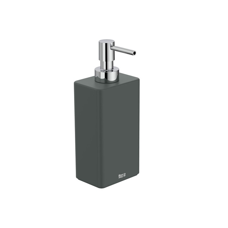 Doseador de sabão de bancada em plástico com acabamento verde mate e design moderno indicado para colocação sobre o tampo sem necessidade de fixação dimensões aproximadas de 73 mm de comprimento 53 mm de largura e 182 mm de altura capacidade de cerca de 0,2 litros ideal para sabonete líquido estrutura leve e resistente à humidade com fácil manutenção proporcionando uma solução funcional e estética para casas de banho residenciais ou comerciais com um visual contemporâneo e discreto no espaço.