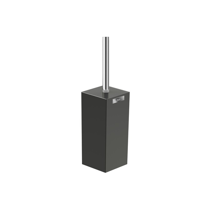 Piaçaba com suporte de chão em metal com acabamento preto mate e design contemporâneo, indicada para colocação diretamente no pavimento sem necessidade de fixação, com dimensões aproximadas de 86 mm de comprimento, 86 mm de largura e 345 mm de altura, estrutura robusta e resistente à corrosão, ideal para casas de banho residenciais ou comerciais, garantindo higiene, durabilidade e um aspeto moderno e discreto no espaço.