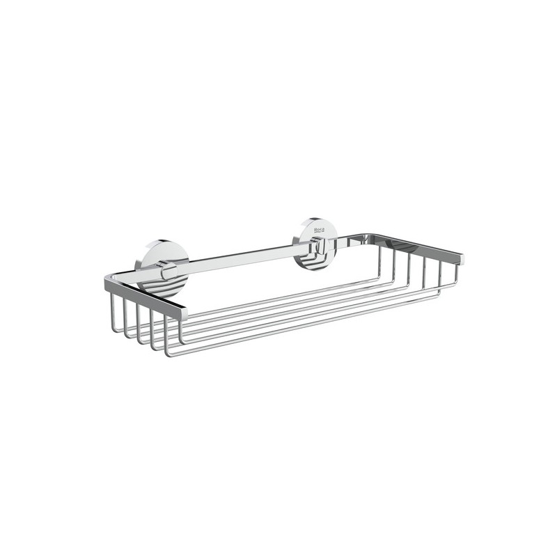 Porta-objetos mural da coleção Compas em metal com acabamento cromado concebido para organizar e armazenar pequenos artigos de higiene pessoal ou cosméticos na zona do duche ou casa de banho com dimensões de aproximadamente 300 × 135 × 65 mm e capacidade de suporte até 5 kg garantindo elevada resistência à humidade e durabilidade com instalação fixa por parafusos ideal para uso diário em ambientes residenciais ou comerciais combinando funcionalidade prática com um design elegante que se integra harmoniosamente em espaços contemporâneos ou clássicos.