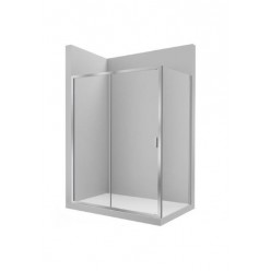L2-E - Divisória frontal para base de duche com uma porta de correr + um painel fixo. Para instalar entre paredes ou com um painel lateral fixo LF. Vidro transparente e perfil em prata brilho. Compensação de 25 mm.