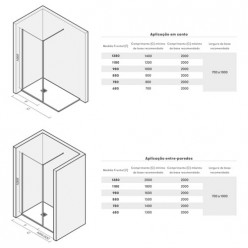 com comprimento de 1400 a 2000mm (em canto) ou 2000 a 2000mm