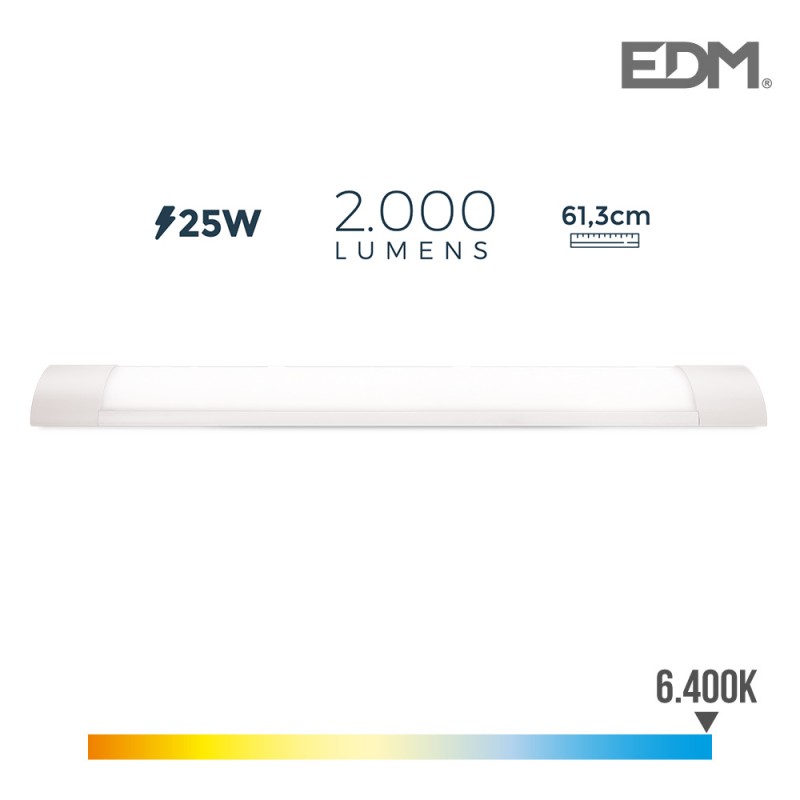 ARMADURA ELETRONICA LED 25W MEDIDAS: 61X12X3,1CM 6.400K LUZ FRIA IP20 2000 LUMENS EDM 25.000 HORAS