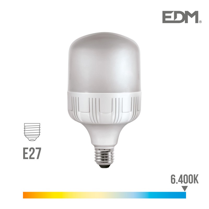 LAMPADA INDUSTRIAL LED 40W 3200 LUMENS E27 6.400K TOM DE LUZ FRIA 220-240V EDM 25.000 HORAS MEDIDAS: 118X213MM