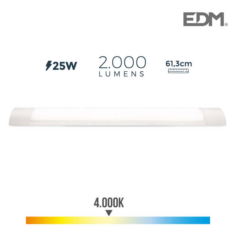 ARMADURA ELETRONICA LED 25W MEDIDAS: 61X12X3,1CM 4.000K LUZ DIA IP20 2000 LUMENS EDM 25.000 HORAS