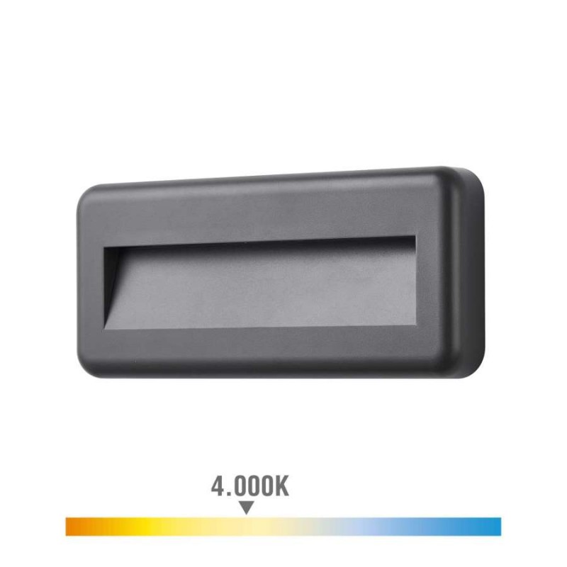 Aplique led 6w 150lm 4000k luz dia rectangular edm tamaño:23x10x2,8cm (ancho/fondo/alto), uso exterior IP65, no regulable, ra80, 25.000h, cuerpo de plástico. Clase F 220-240v.