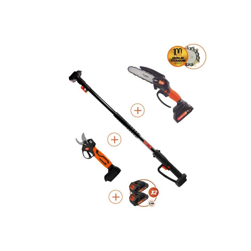 KIT TESOURA+MOTOSESERA+VARA+2 BATERIAS DE PODA