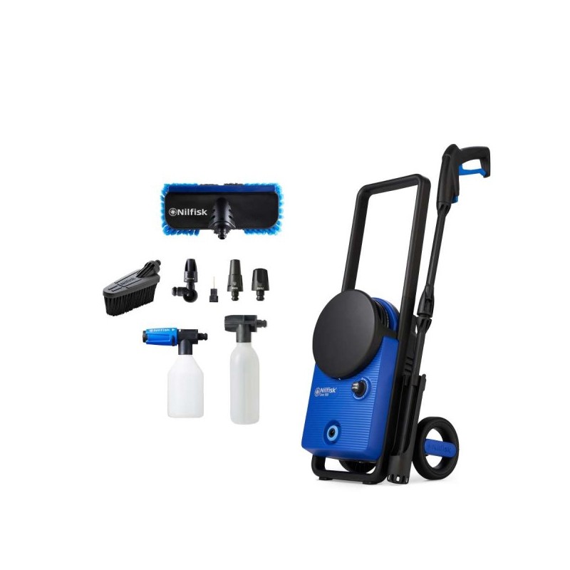 A Nilfisk Core 130-6 PowerControl Car Wash é uma lavadora de alta pressão compacta e potente, ideal para tarefas de limpeza doméstica, como lavagem de carros, pátios e mobiliário de jardim. Com pressão ajustável e acessórios específicos, oferece versatilidade e eficiência na remoção de sujidade.