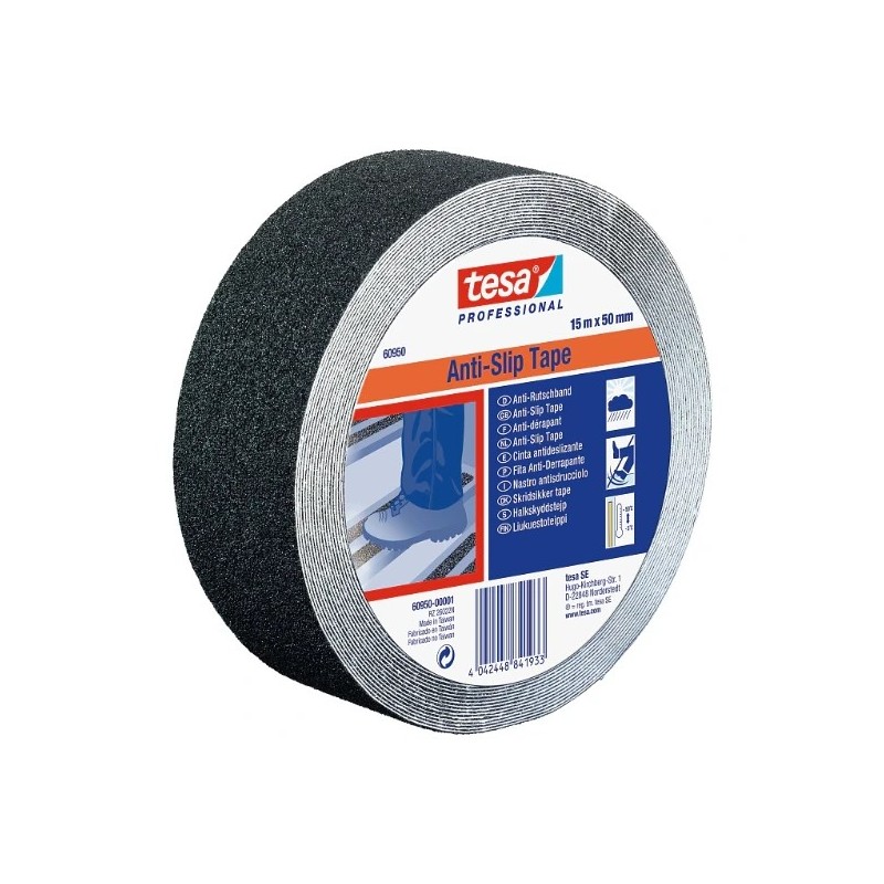 A fita tesa® 60950 é uma fita adesiva antiderrapante com uma ampla gama de possíveis aplicações. A fita antiderrapante é composta por um suporte de PVC revestido com partículas minerais. tesa® 60950 é a versão preta do produto.