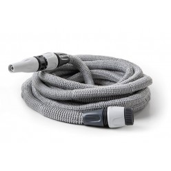 Kit de mangueira autoextensível para a irrigação de plantas e flores e limpeza de superfícies externas. Ideal para pequenos jardins, terraços ou varandas. Prático, leve e fácil de usar, graças à mangueira que se estende sozinha até 10 m com a pressão da água. Após o uso, a mangueira esvaziada, se retrai e é