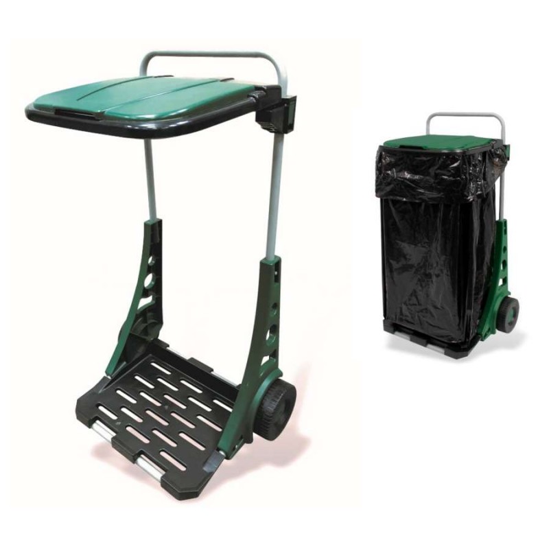 Carrinho de lixo de jardim válido para saco universal de 80x100cm (não incluído).