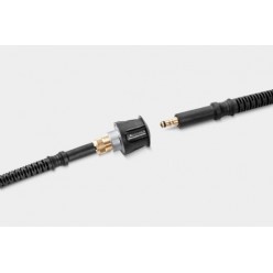 A extensão da mangueira de alta pressão XH 10 Q oferece maior flexibilidade e aumenta o raio de operação da lavadora de alta pressão. Basta conectá-la entre a pistola e a mangueira de alta pressão. Super resistente e robusta, esta mangueira é reforçada com trançado têxtil e possui proteção contra dobras. Possui um acoplamento de latão robusto para uma longa vida útil. A extensão da mangueira suporta pressões de até 180 bar e é projetada para temperaturas de até 60 °C. Compatível com todas as lavadoras de alta pressão Kärcher nas classes K 3 a K 7 com sistema de conexão Quick Connect .