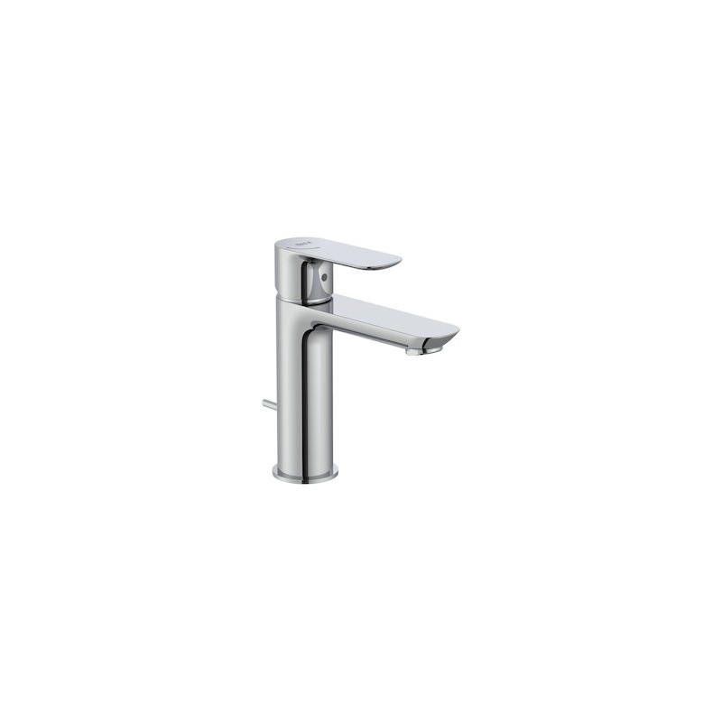 Roca Misturadora Monocomando para lavatório com descarga automática e Cold Start é uma misturadora monocomando para lavatório com descarga automática e abertura Cold Start em água fria, concebida para instalação de bancada com ligações de alimentação flexíveis incluídas e ligação de água 3/8”, equipada com cartucho cerâmico que assegura controlo preciso de caudal e temperatura e projetada para poupança de água e energia com operação suave através das tecnologias Evershine® e SoftTurn®, apresentando um design elegante com corpo cilíndrico estilizado e manípulo plano retangular que combina estética contemporânea e funcionalidade fiável para casas de banho modernas com desempenho eficiente no uso diário.