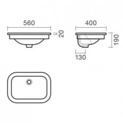 Lavatório em cerâmica de encastre (por baixo ou por cima). Sem furo para torneira, com furo de nível. Na embalagem: lavatório e kit de fixação. IMAGEM ORIENTATIVA Torneira e tampo não incluídos.