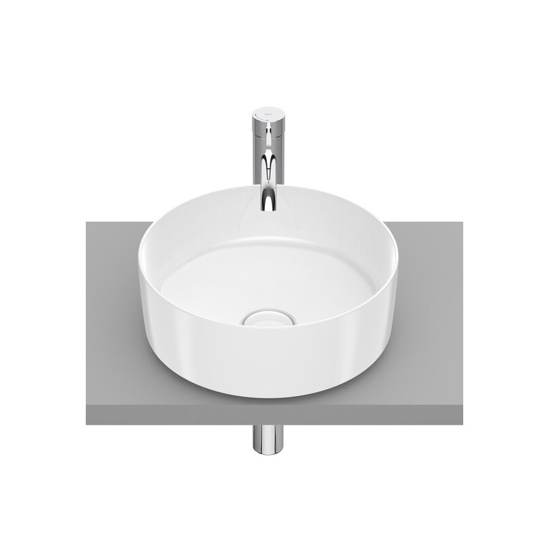 Lavatório Round de sobre bancada em porcelana sanitária com design circular e superfícies suaves, concebido para instalação sobre móvel ou bancada sem orifícios pré-perfurados para torneira, permitindo escolher a torneira que melhor se adapta ao estilo do espaço. A sua forma arredondada proporciona uma estética elegante e contemporânea, facilidade de limpeza e integração harmoniosa em casas de banho modernas, oferecendo uma solução prática e sofisticada para projetos residenciais ou de renovação. IMAGEM ILUSTRATIVA: TORNEIRA NÃO INCLUÍDA.