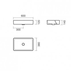 Lavatório em cerâmica de pousar em bancada. Sem furo para torneira, sem furo de nível. Faces laterais totalmente vidradas. Na embalagem: lavatório e válvula de descarga em cerâmica. IMAGEM ORIENTATIVA Torneira e tampo não incluídos.
