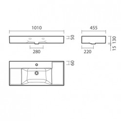Lavatório em cerâmica de pousar. Com furo para torneira, com furo de nível. Faces laterais totalmente vidradas. Compatível com móveis Sanitana.