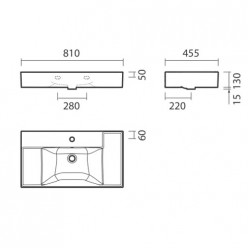 Lavatório cerâmico de pousar.Com furo para torneira, com furo de nível. Faces laterais totalmente vidradas. Compatível com móveis Sanitana. Na embalagem: lavatório. IMAGEM ORIENTATIVA Torneira e tampo não incluídos.