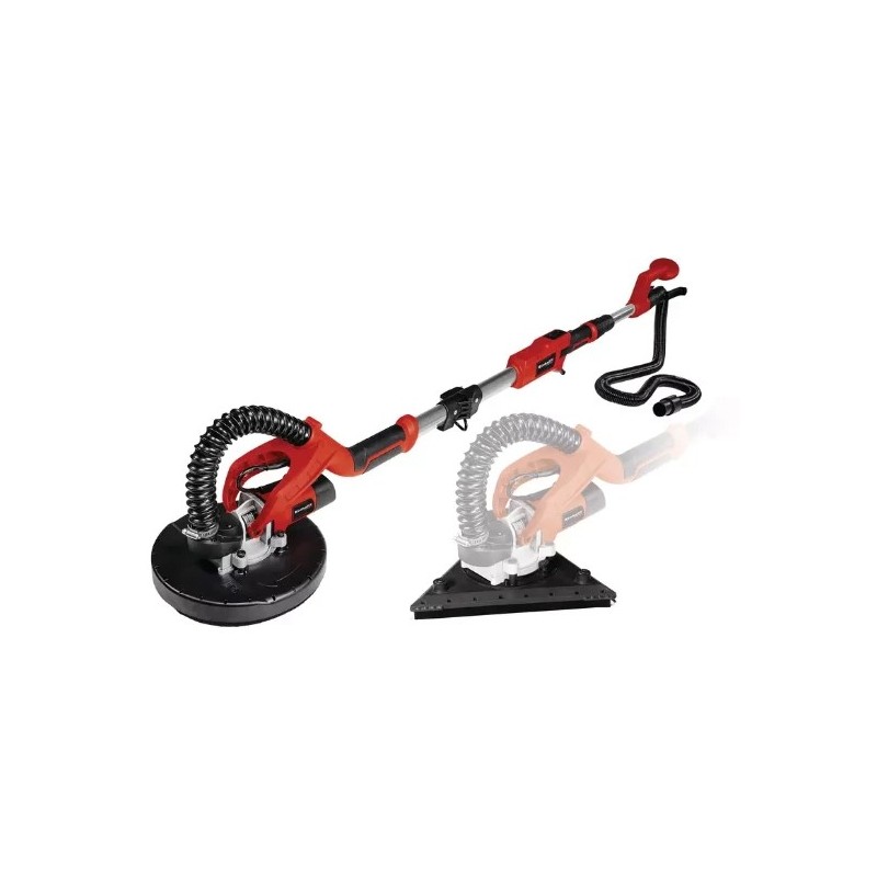 A lixadora para drywall TE-DW 225 X da Einhell é uma ajuda útil para trabalhos de renovação ou projetos de ampliação em sua própria casa. Seja para lixar superfícies secas com acabamento em gesso em paredes ou tetos, ou para remover resíduos de gesso ou papel de parede das paredes, todas as tarefas podem ser realizadas sem esforço graças ao potente motor de 750 W e à transmissão angular de metal de alta qualidade. Com uma velocidade em vazio de 600 a 1500 rpm e um disco de lixagem com 225 mm de diâmetro, a lixadeira para gesso Einhell oferece as características técnicas perfeitas para uma utilização robusta e fiável na sua obra doméstica. O disco de lixagem intercambiável – redondo ou triangular – garante uma aplicação perfeita. Os rolamentos pivotantes garantem uma mobilidade total em todas as situações. A montagem do anel da escova é acionada por mola. A pega longa dobrável permite uma montagem e desmontagem rápida e fácil.